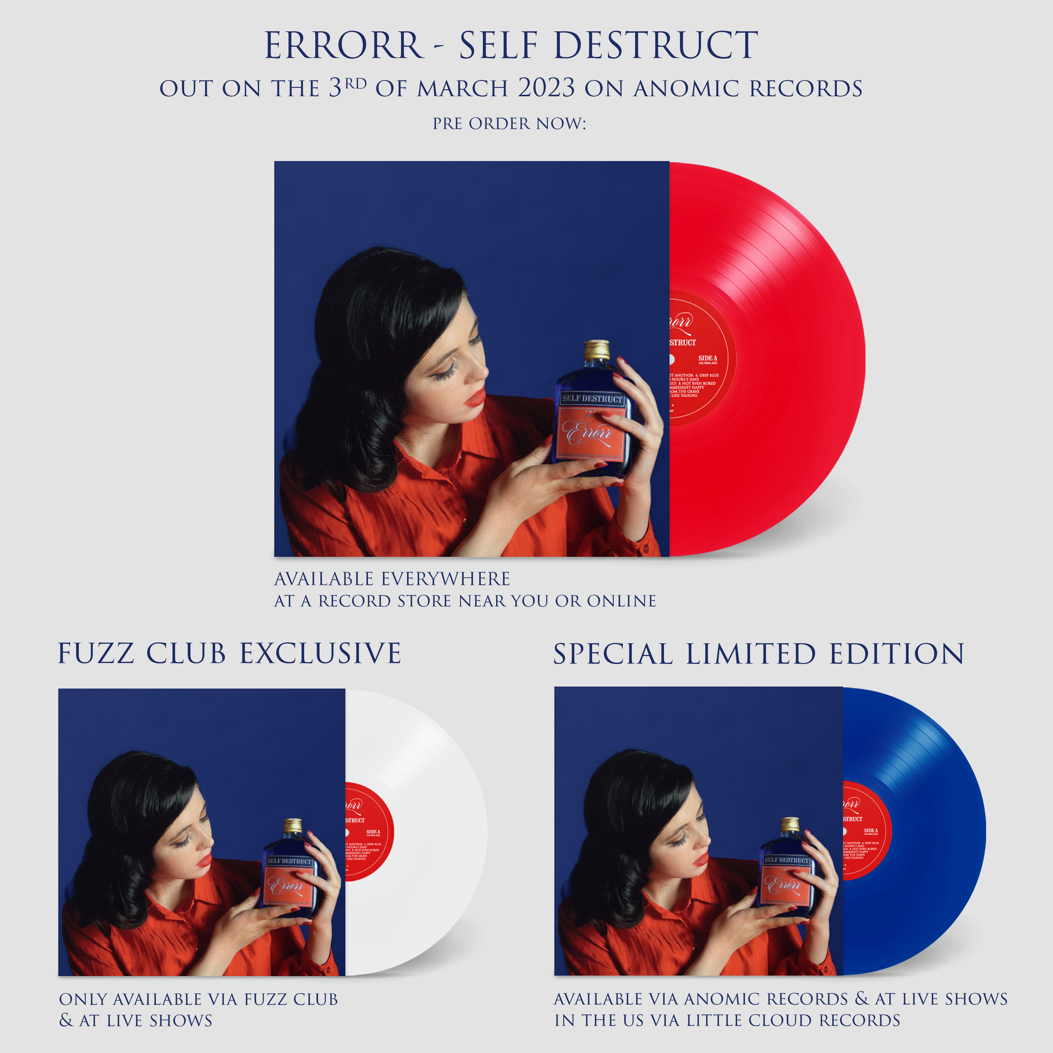 Self Destruct will be available on transparent red vinyl at a record store near you. A limited transparent blue edition will be available only through Anomic Records and in the US through Little Cloud Records and a special edition in white will be available exclusively via the well known UK label